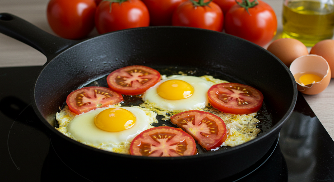 가장 간단하고 맛있는 방법이죠. 올리브유를 두른 팬에 깍둑썰기한 토마토를 넣고 볶다가 달걀을 풀어 함께 익혀주면 끝! 아침 식사로 든든하고 건강에도 최고입니다.