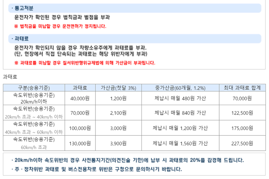 - ※ 승합차의 경우에는 해당 범칙금에서 1만원 추가